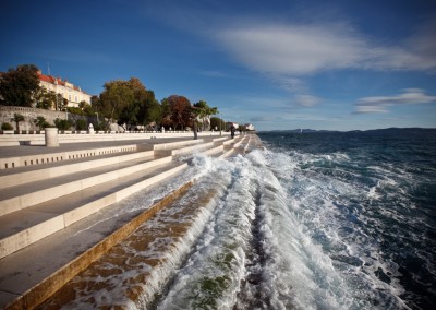 Après la Seconde Guerre mondiale, la ville croate de Zadar a subi une grande transformation reconstructive et rapide. Le front de mer de la ville est devenu rien de plus qu’un mur de béton jusqu’en 2005, lorsque l’architecte Nikola basic a proposé une refonte d une partie de ce mur pour interagir avec les vagues de l’océan. Caché sous des blocs de marbre, l’orgue de la mer ‘(morske orgulje en croate) est constitué d’un réseau de tubes de polyéthylène et de résonance des cavités qui chantent comme les vagues et le vent bercent la rive. Avec trente cinq tubes individuels couvrant une longueur totale de soixante-dix mètres, il est le plus grand aérophone dans le monde. Selon les rapports, le son est spécifiquement dirigé vers la mer et il est impossible de l’entendre au sein de la ville de Zadar elle même. En 2006 à Barcelone, parmi 207 projets provenant de toute l´Europe, c´est celui de l´architecte Nikola Bašić qui a reçu le Prix européen pour l´aménagement des espaces publics.